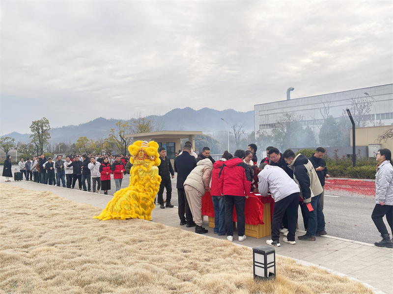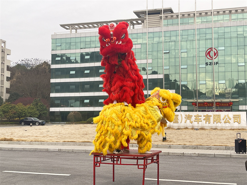 锣鼓一响,瑞狮起舞。随着舞狮的腾跃,节日的气氛弥漫整个工厂。