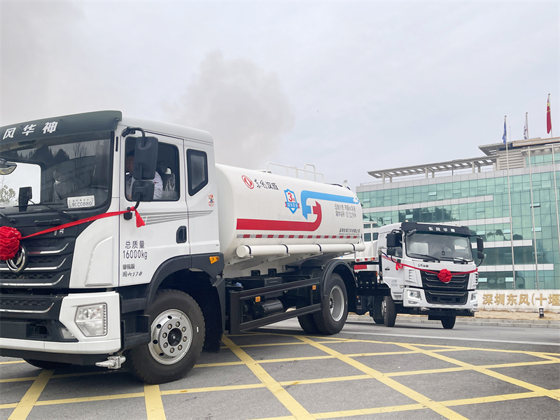 噼里啪啦的鞭炮声中,一辆辆新车整齐列队,首发驶向各地,助力城市环保事业。