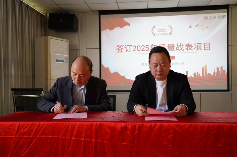 在质量战表项目签订环节,深圳东风董事长刘刚与技术工艺部、品质采购部、部品车间、总装车间主要负责人,逐一签订2025年质量战表项目书。结合[敏感词]的目标分解和具体的提升方案,从上至下统一行动,将“质量年”活动贯彻到每一个研发、采购、生产、服务各环节,形成全方位、全流程的质量管理实施氛围。